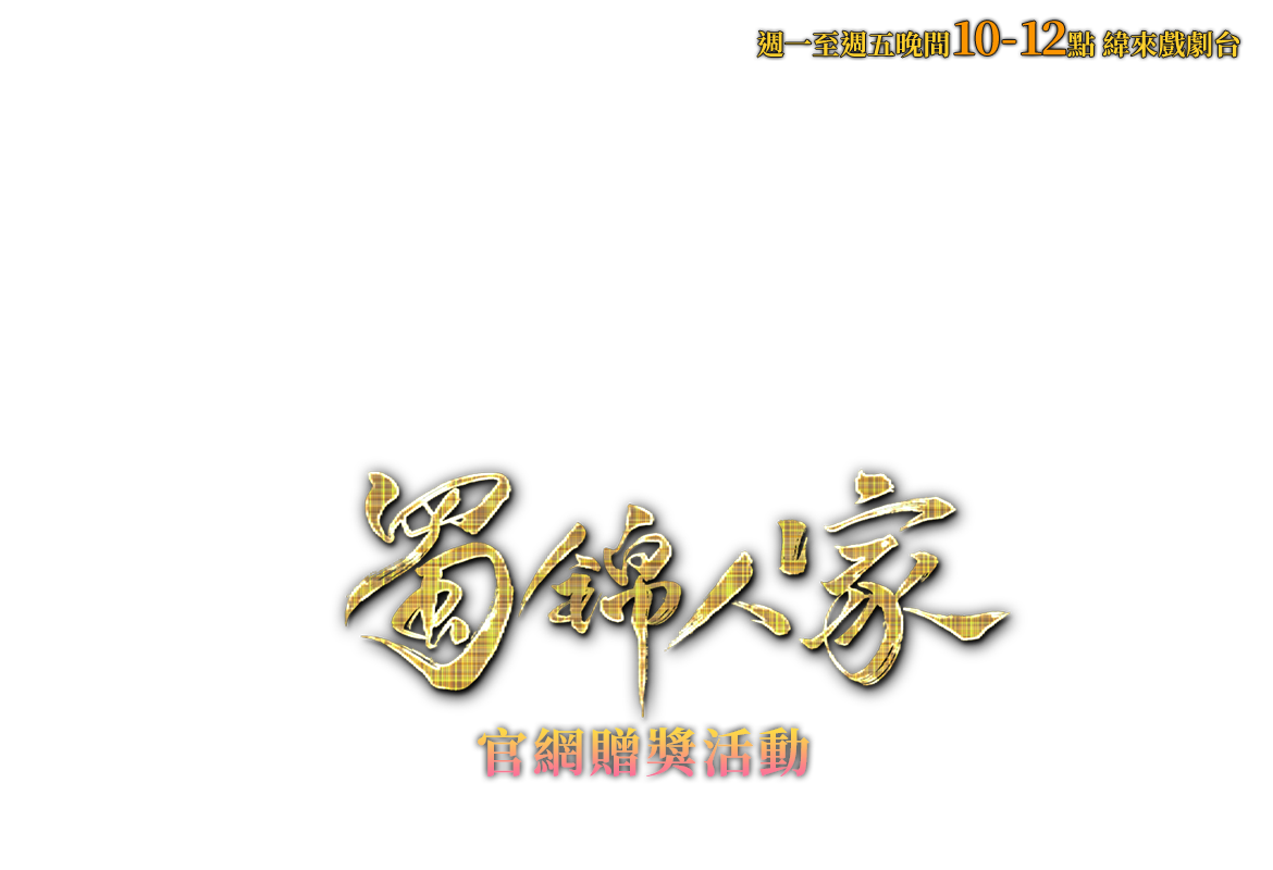 活動辦法: 鎖定週一至五晚間10-12點《蜀錦人家》,回答當天劇情問題,即可參加抽獎!